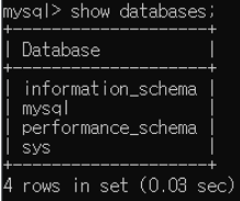 show databases; 를 입력합니다.