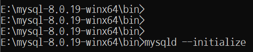 7. 설치명령어 mysqld --initialize를 입력합니다.