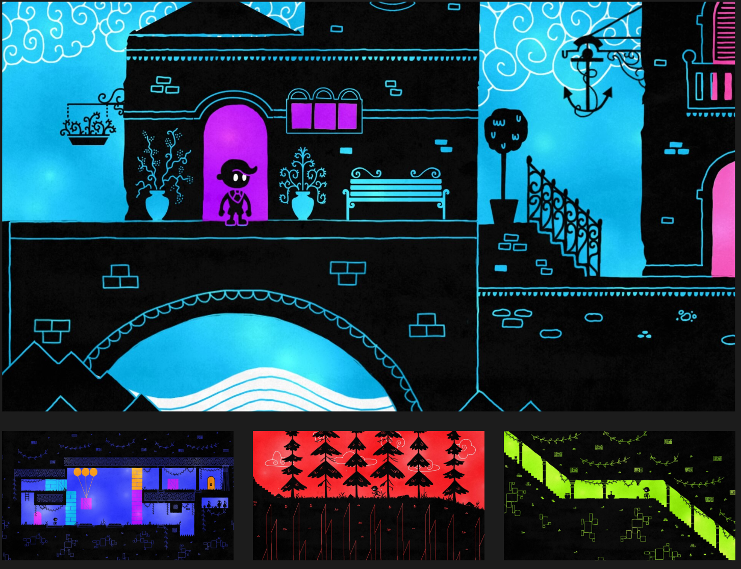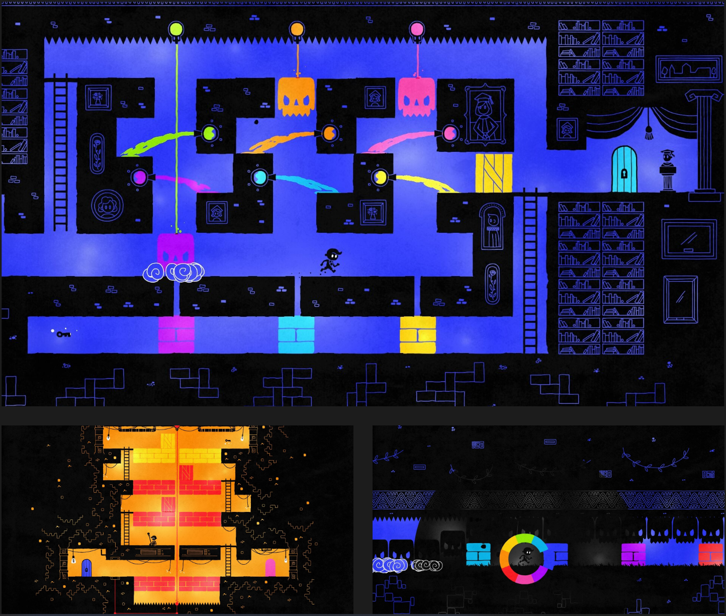 Hue는 수상 경력에 빛나는 다채로운 퍼즐 모험 게임으로, 배경 색을 바꾸며 게임 속 세계를 바꿀 수 있습니다.