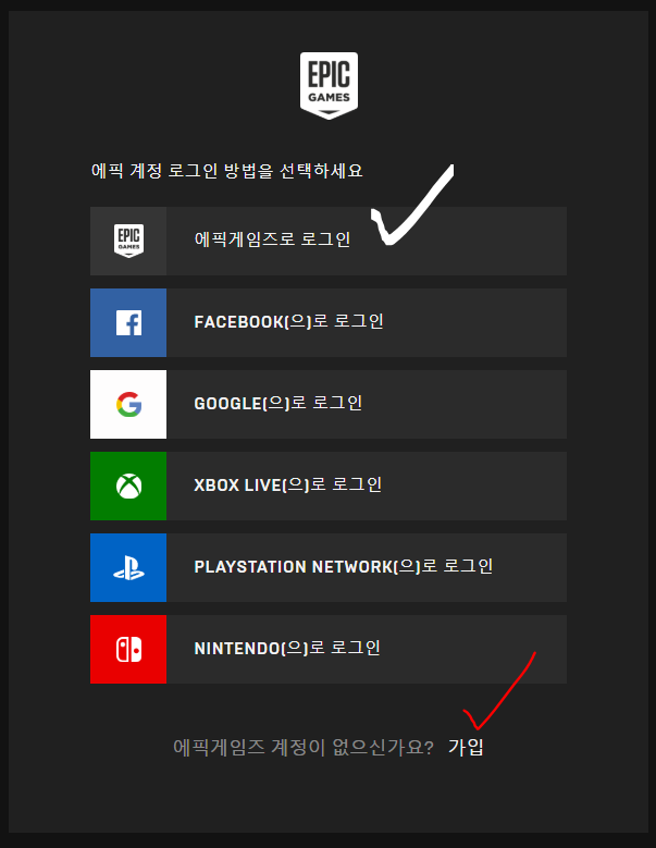 2. 에픽게임즈 계정을 생성합니다. (빨간 체크)