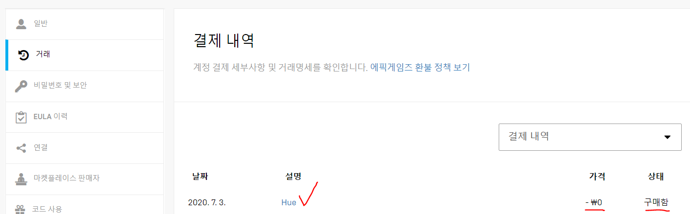 5. 잘 구매됐는지 확인하기 위해, 구매 기록을 확인합니다.