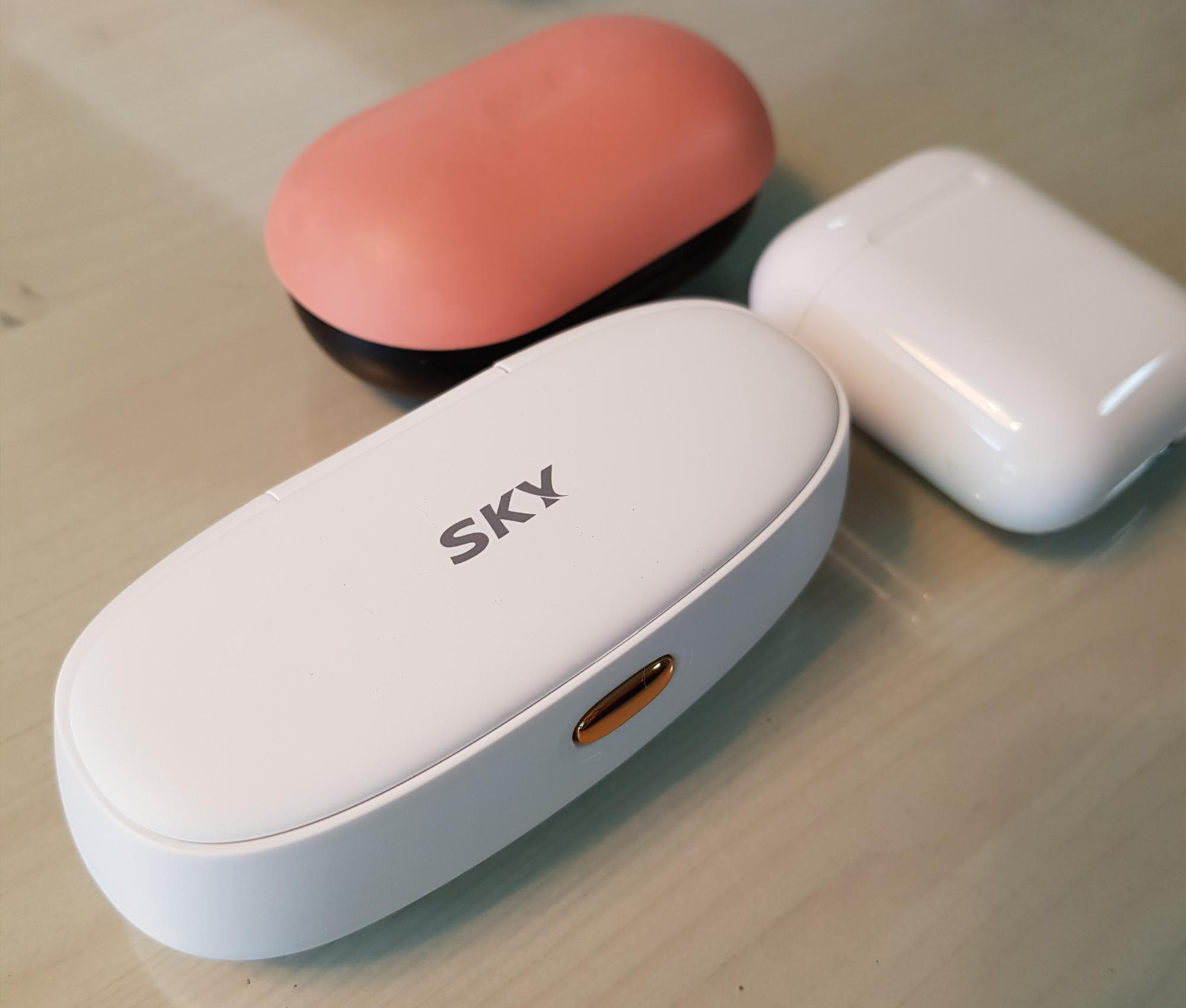 왼쪽부터 스카이 핏 프로 화이트, 갤럭시 버즈, 에어팟 1세대 입니다.