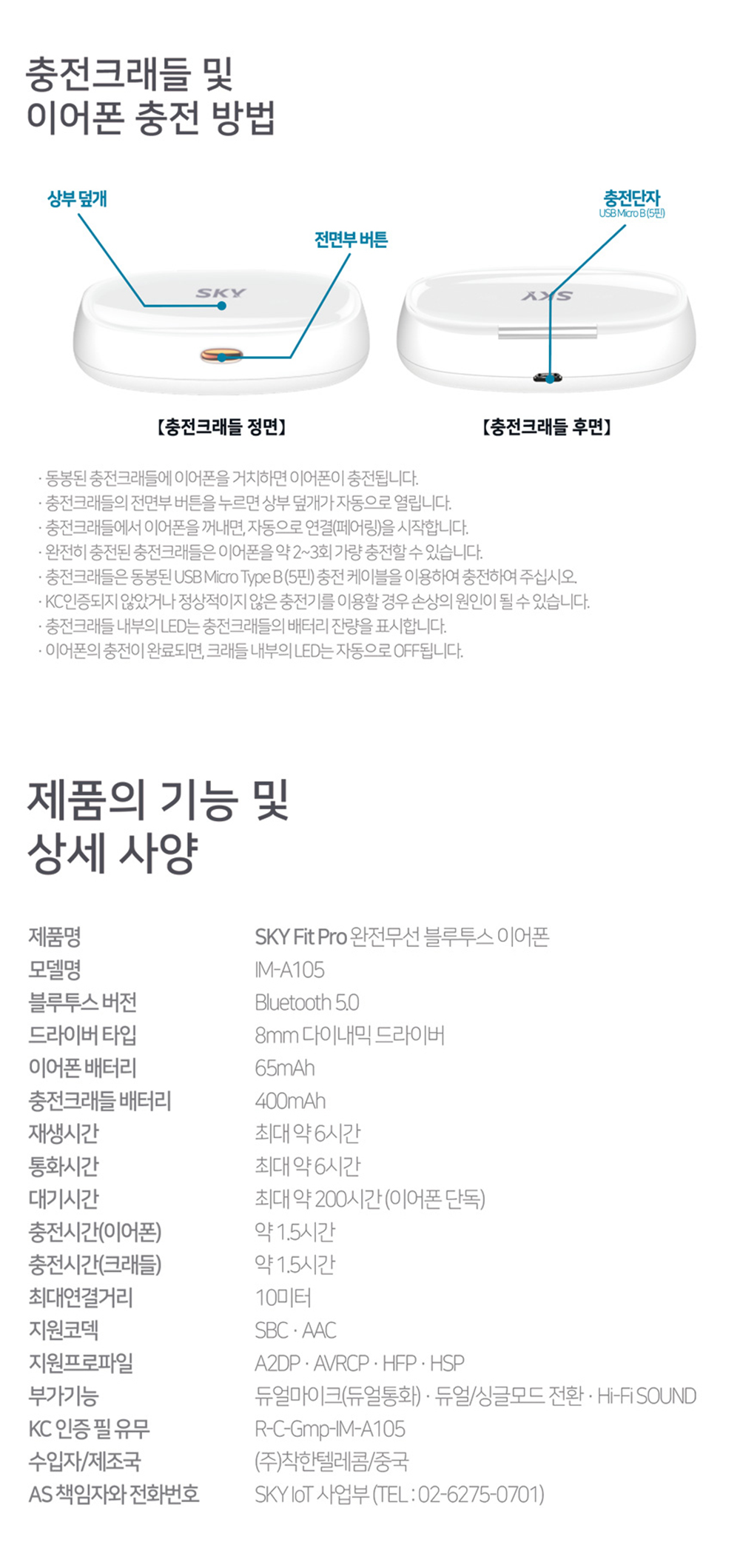 [스카이 핏 프로 블랙] 가성비 블루투스 이어폰(IM-A105)