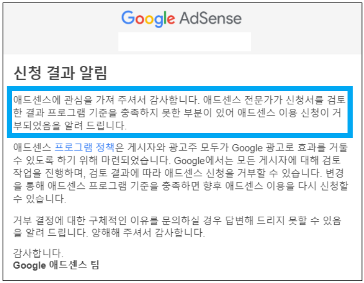 참고로 최근엔 코로나 때문에 애드센스 메일이 지연되거나, 거절 사유로 오기도 합니다.