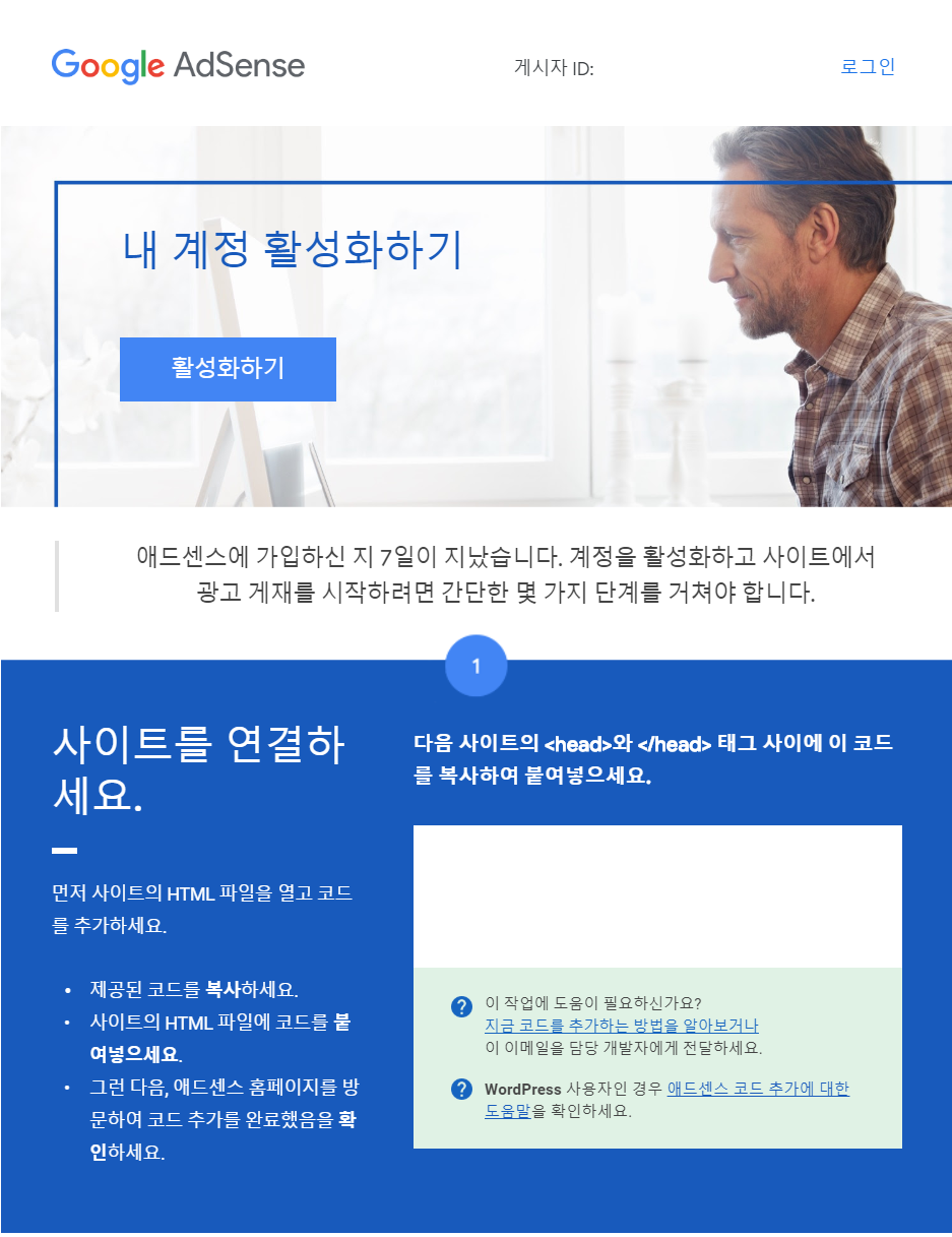 애드센스를 신청한 뒤 약 14일이 지났을 때입니다.