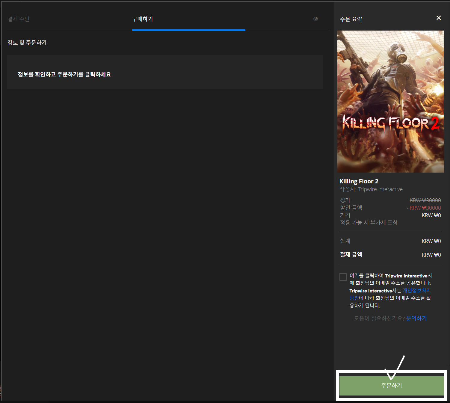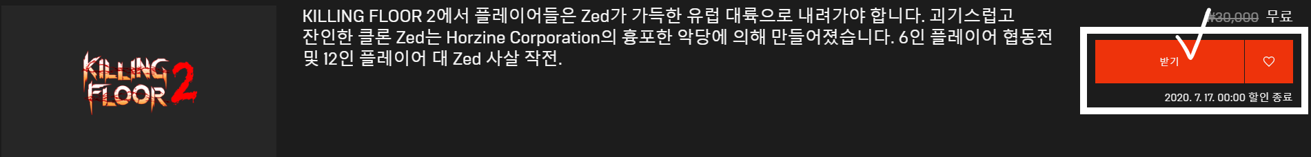 하단 이미지처럼 Killing Floor 2가 -\0으로 되어 있다면, 무료로 구매 성공입니다!
