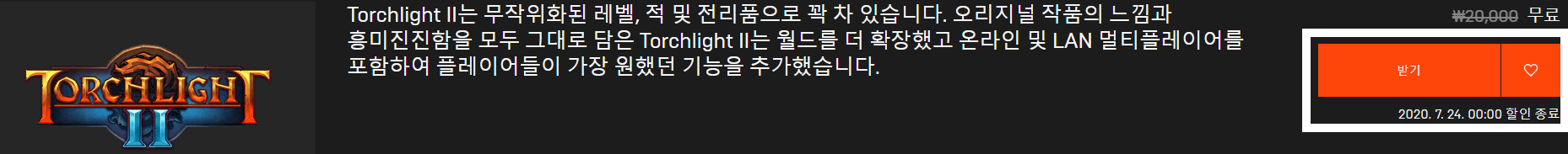 현재 에픽게임즈에서 토치라이트2(Torchlight 2)를 무료로 배포중에 있습니다.