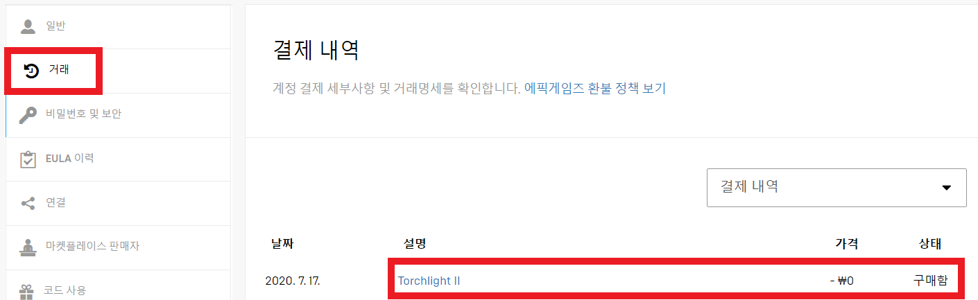 하단 이미지처럼 Torchlight 2가 -\0으로 되어 있다면 무료로 구매 성공입니다.