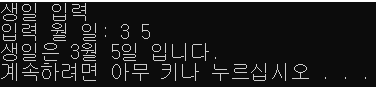 printf("생일은 %d월 %d일 입니다.\n", month, day);