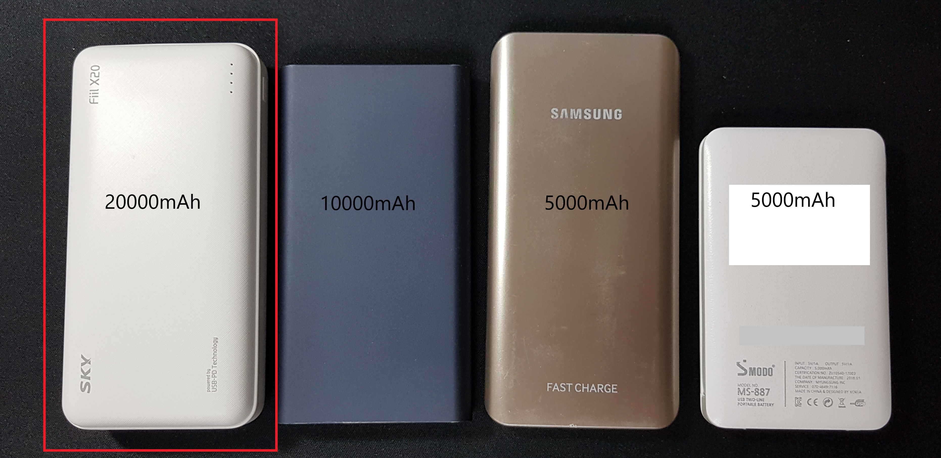 제가 갖고 있는 다른 보조배터리들과 크기 비교를 해보았을 때