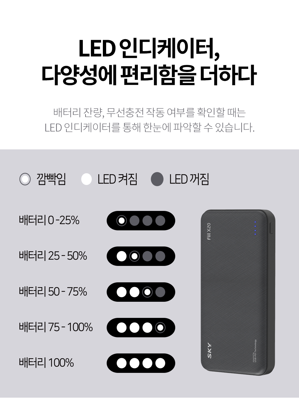 <배터리 잔량 - LED 인디케이터 모습>