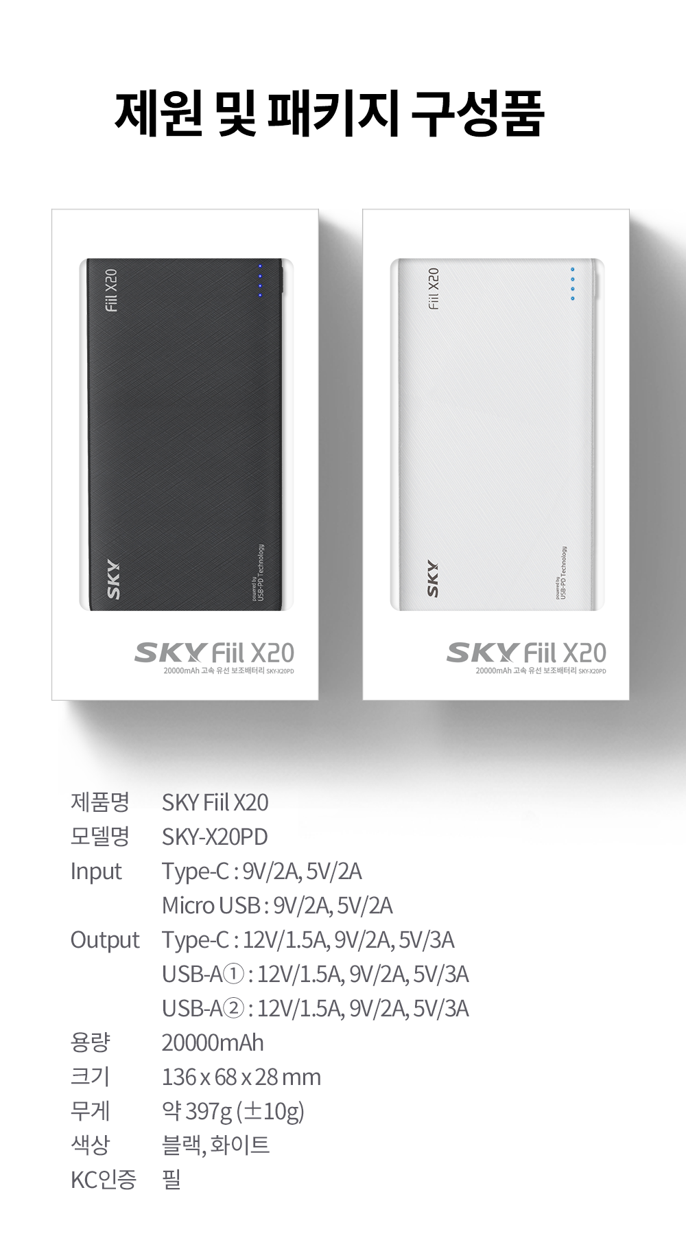 스카이 필 X20 QC3.0 고속충전 PD 보조배터리 20000mAh : 네이버쇼핑
