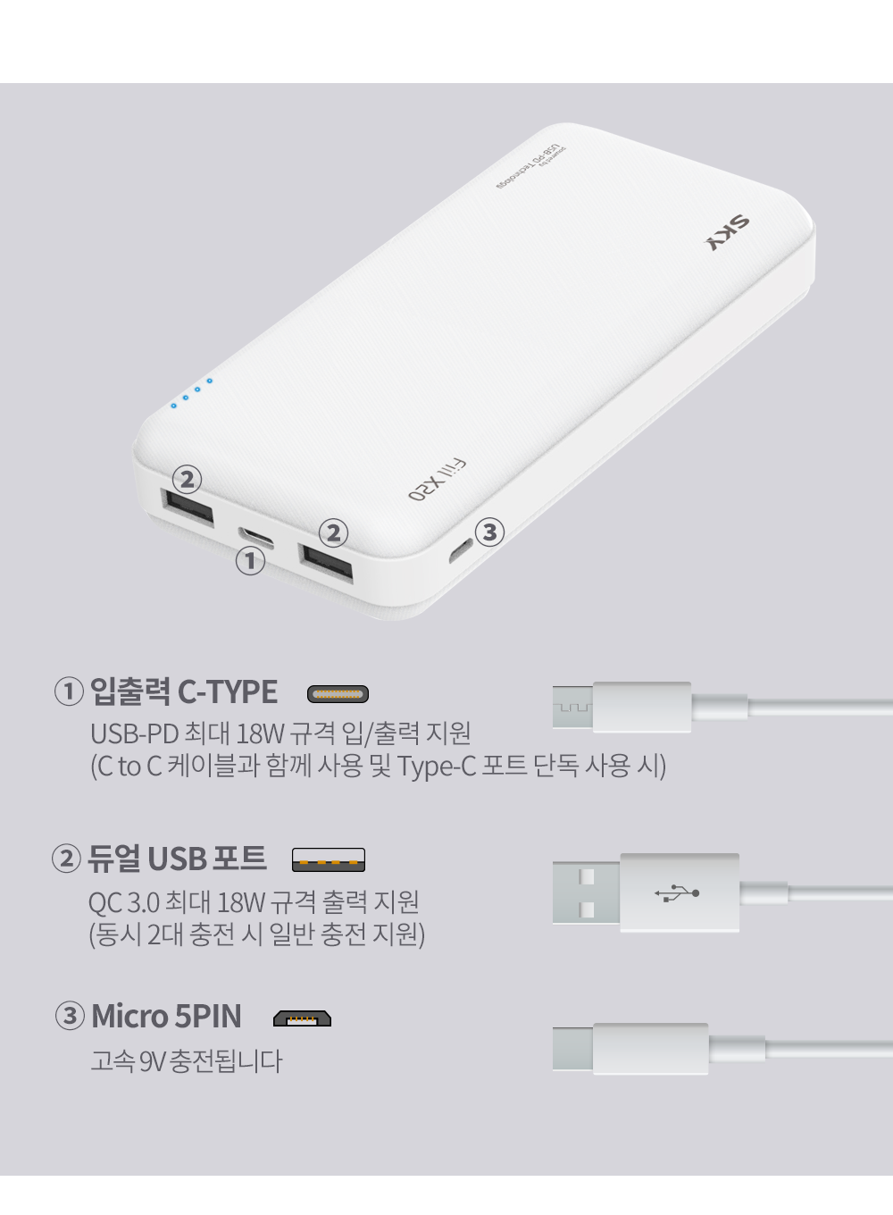[스카이 필 X10 보조배터리 화이트] 가볍고 편한 데일리 보조배터리 (SKY-X10PD)