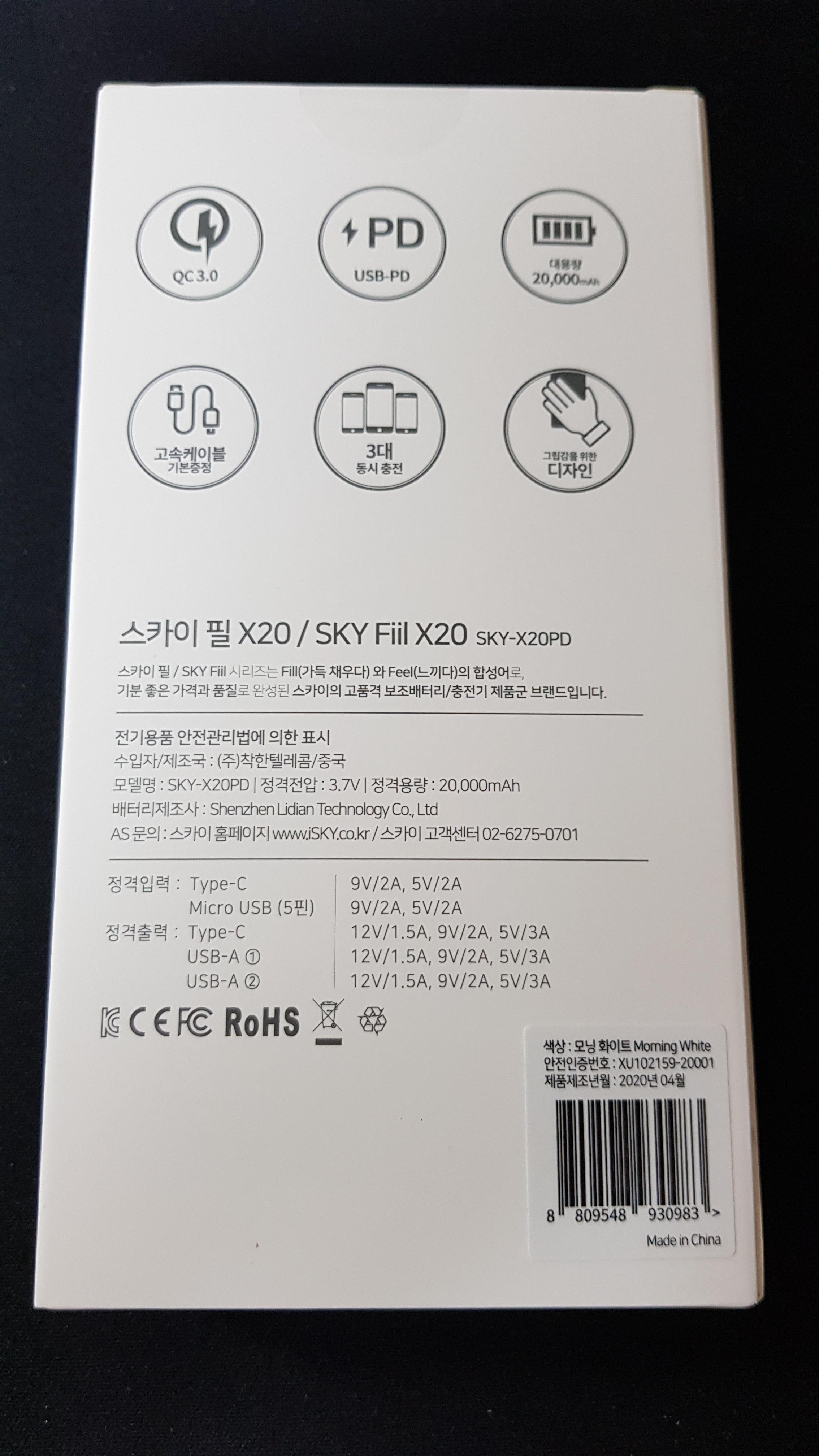 기다리던 스카이 필 X20 보조배터리가 도착했습니다!