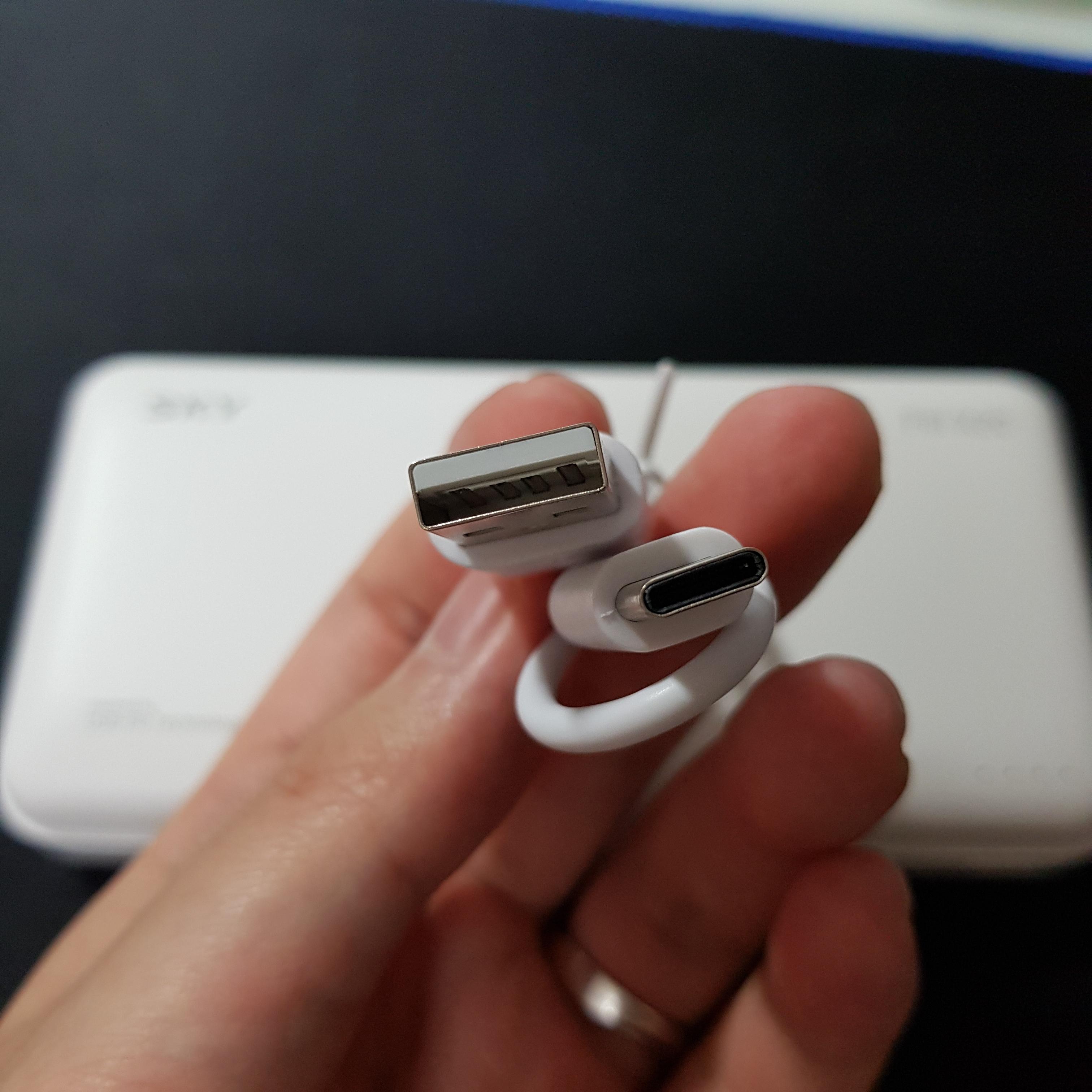 요즘 보조배터리답게, micro 5핀 충전선이 아닌 C type 충전선이라 만족스럽습니다.