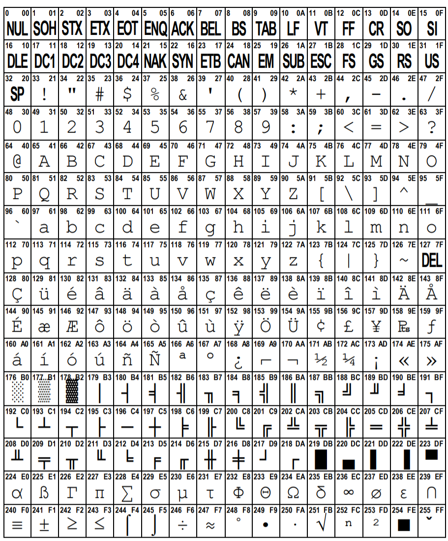 ASCII Code - The extended ASCII table