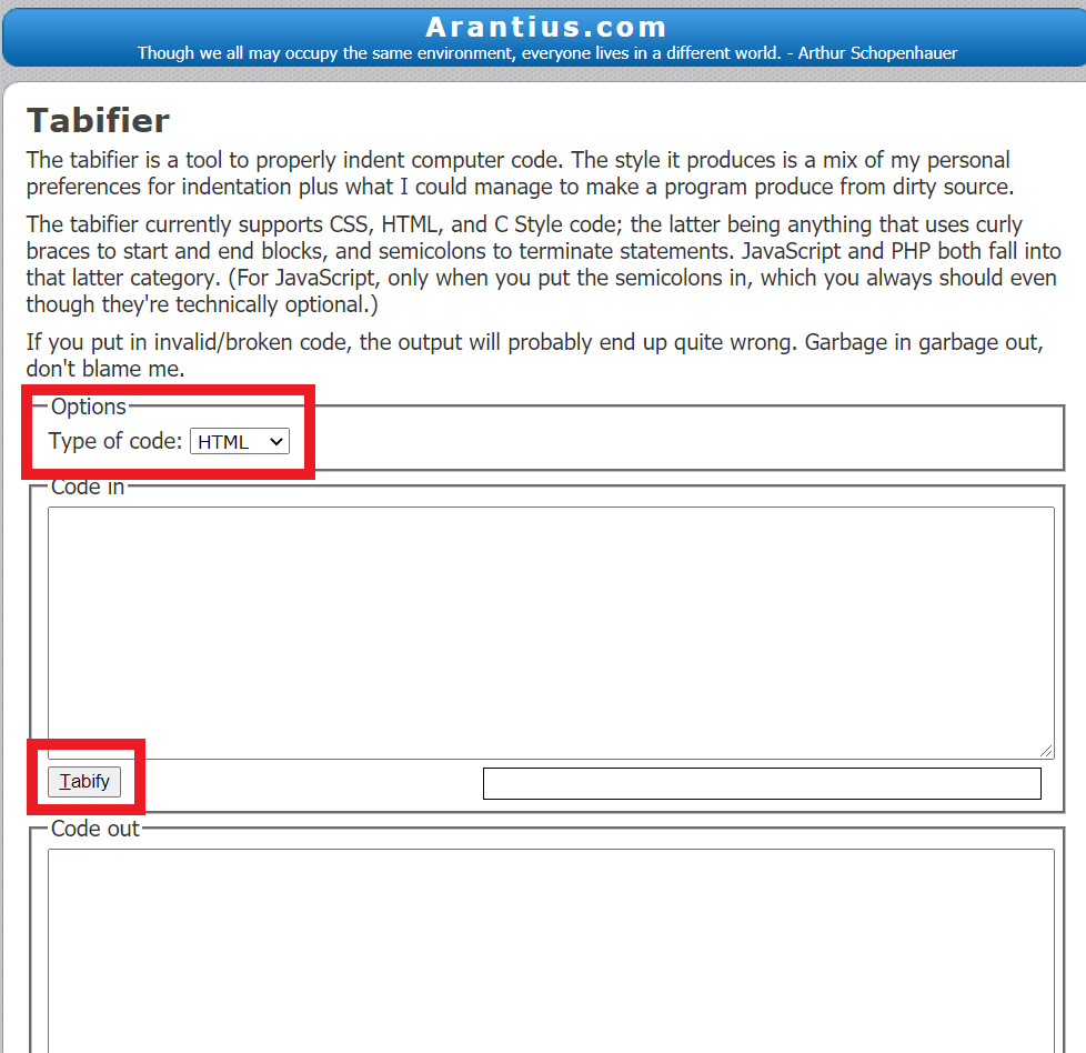 Tools - Tabifier (HTML and CSS code beautifier) - Arantius.com