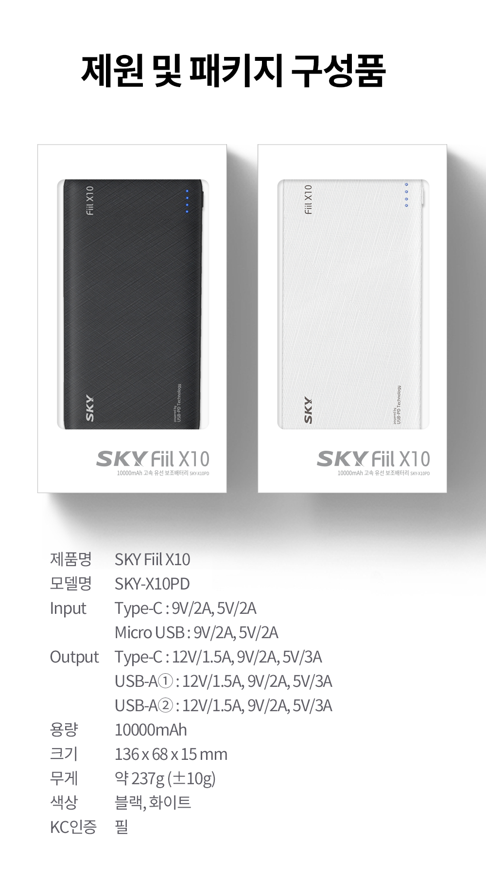 스카이 필 X10 QC3.0 듀얼 고속충전 PD 대용량 보조배터리 10,000mAh SKY-X10PD : 네이버쇼핑