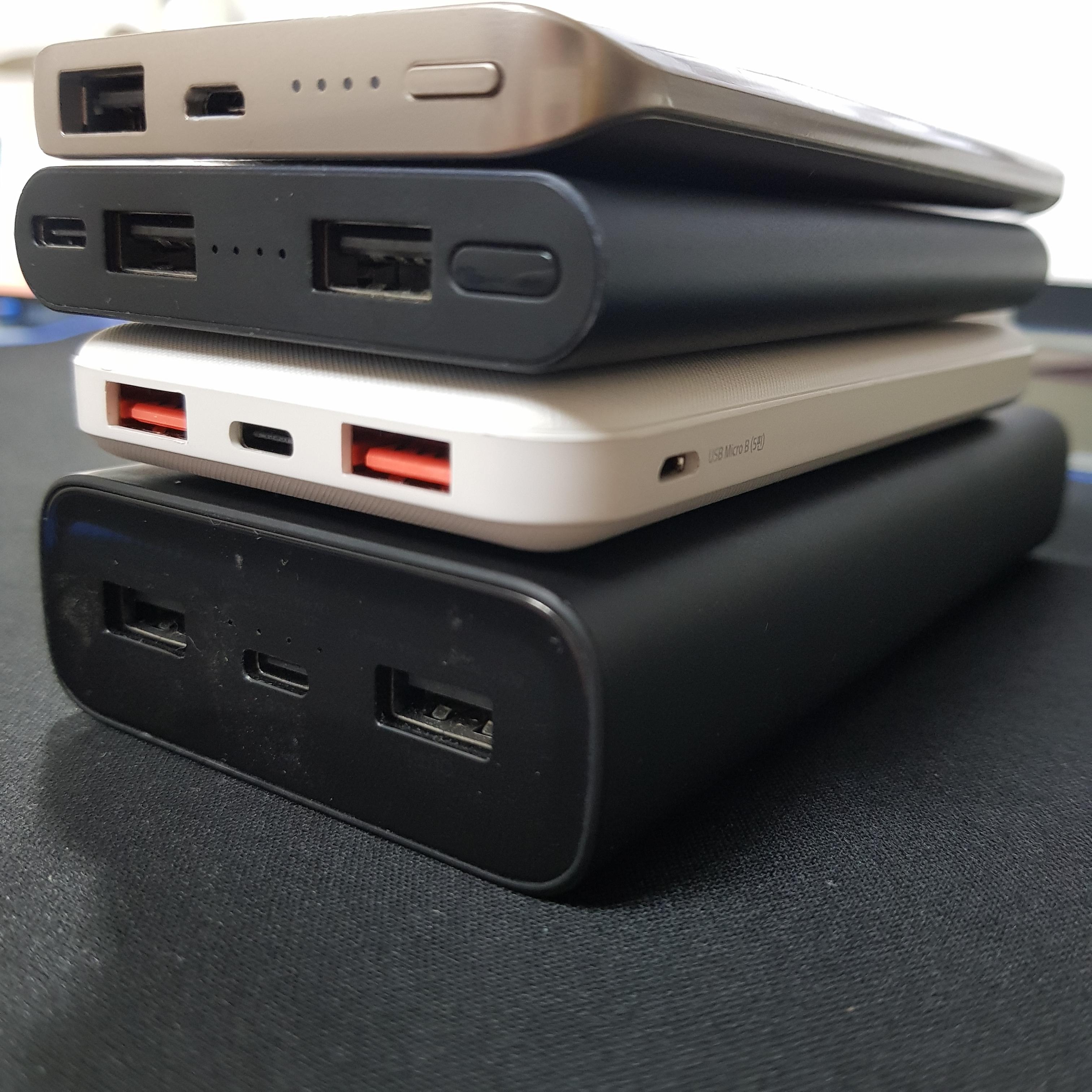 두께 차이다른 보조배터리들과의 크기 비교를 해봤을 때