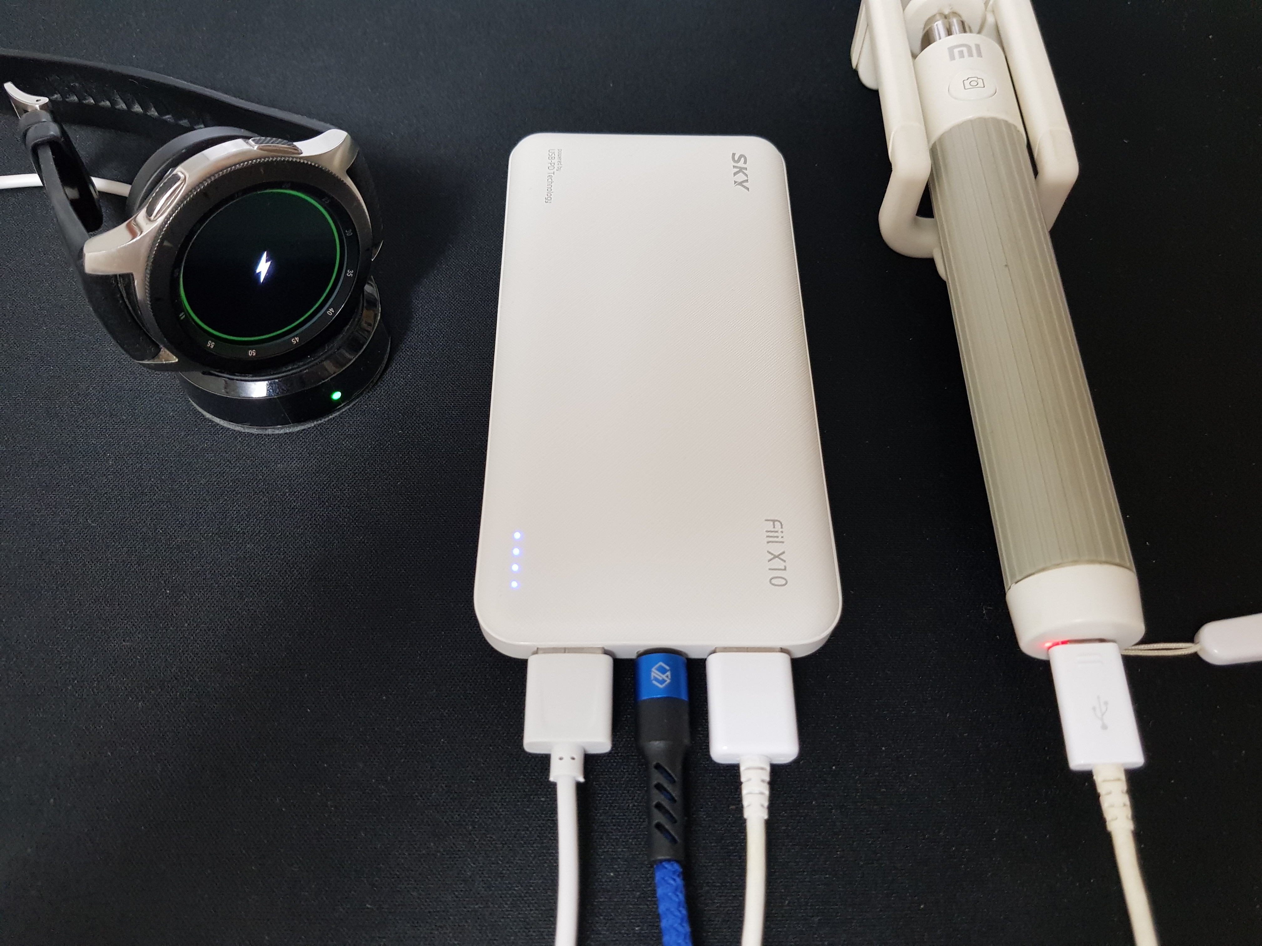갤럭시 워치와 샤오미 셀카봉을 충전시키면서, 보조배터리도 함께 충전(C type)되는 모습입니다.