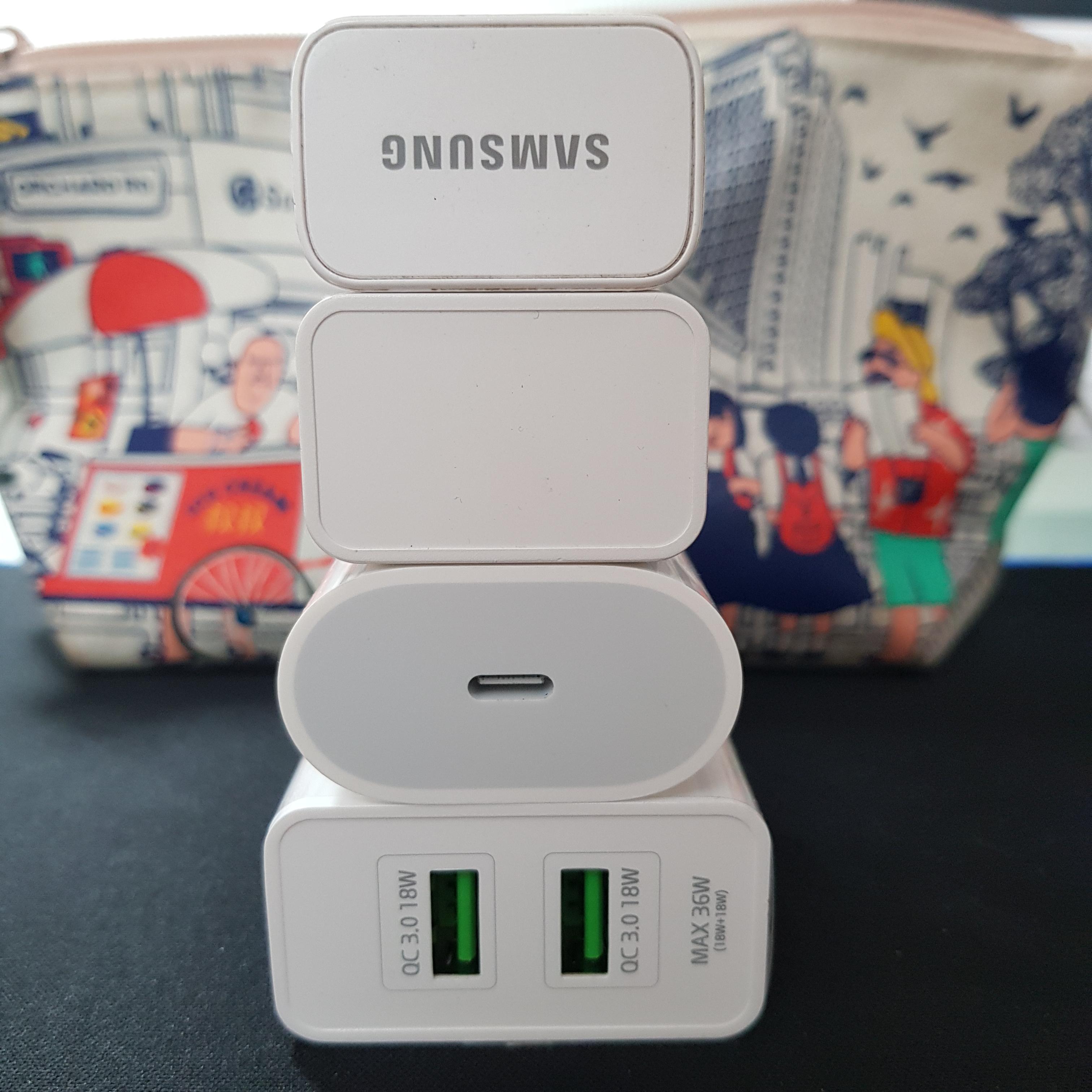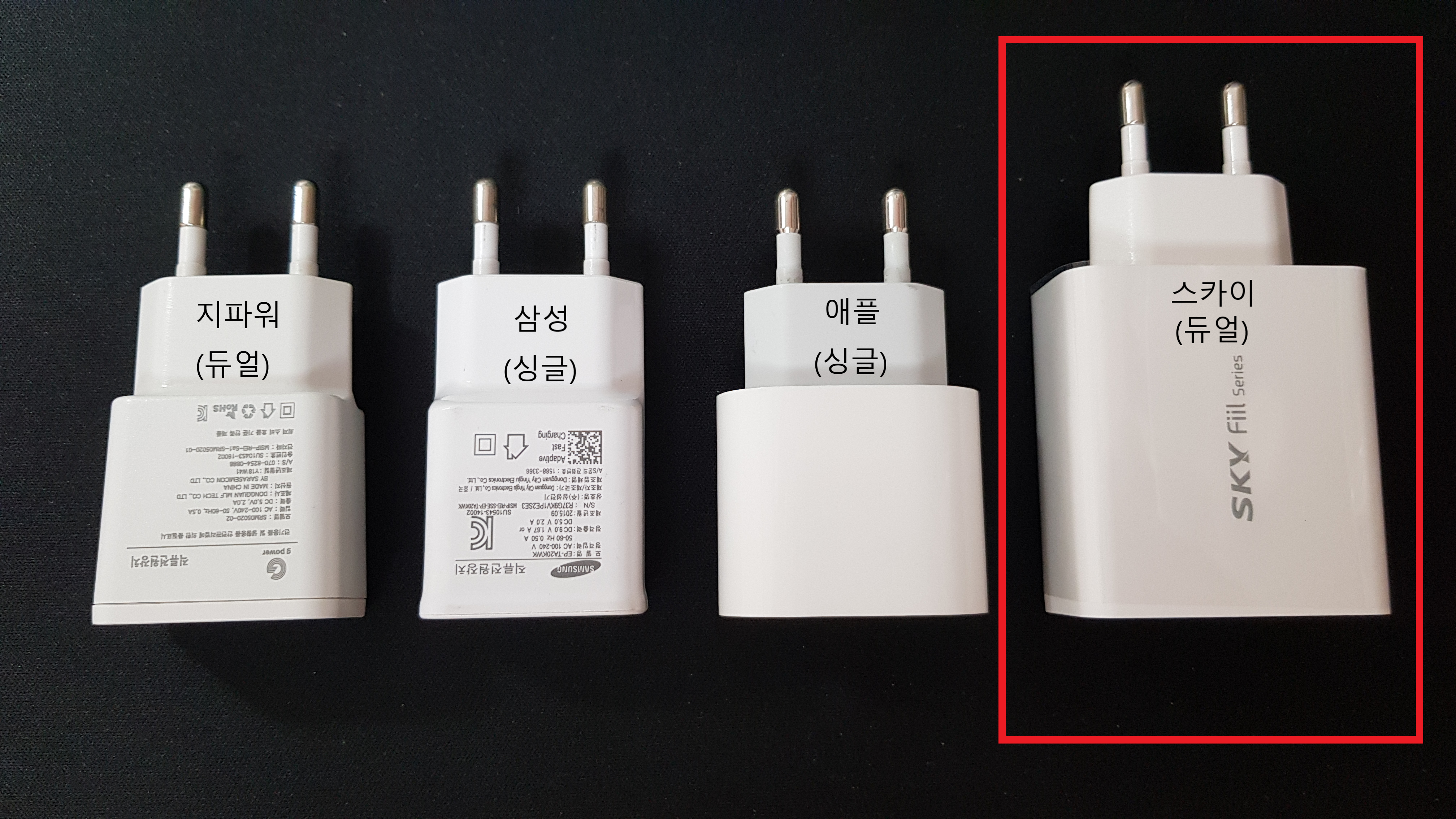 아래는 충전기들의 두께를 비교한 사진입니다.