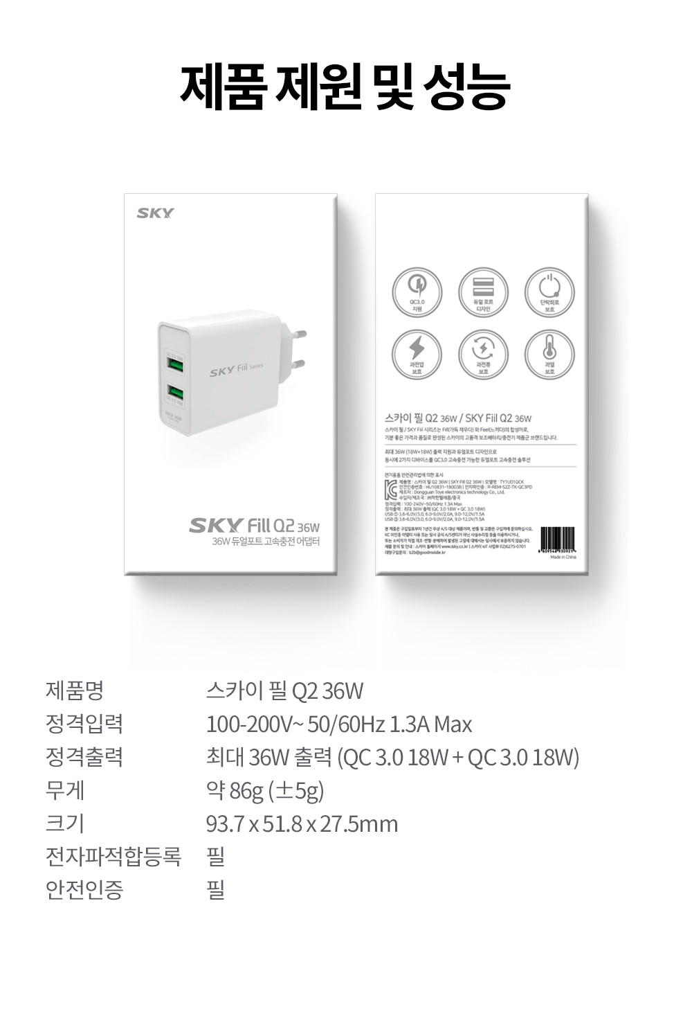 스카이 필 Q2 36W QC3.0 듀얼 고속 충전기 TY1U01QCK : 네이버쇼핑