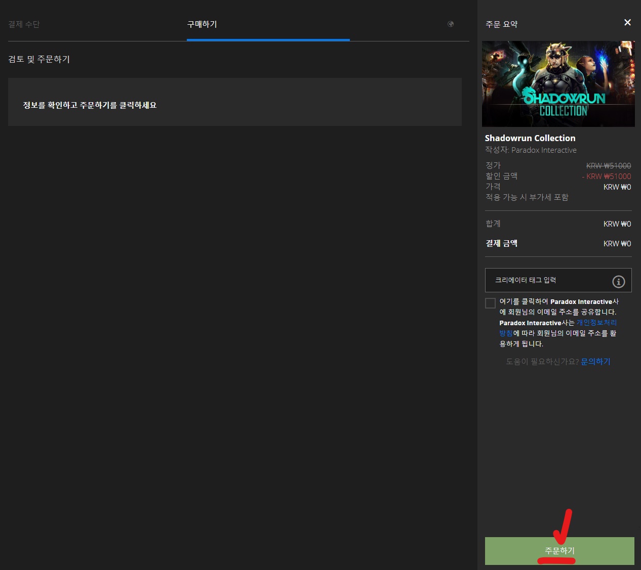 하단 이미지와 같이 HITMAN 과 Shadowrun Collection이 -\0으로 되어 있다면,