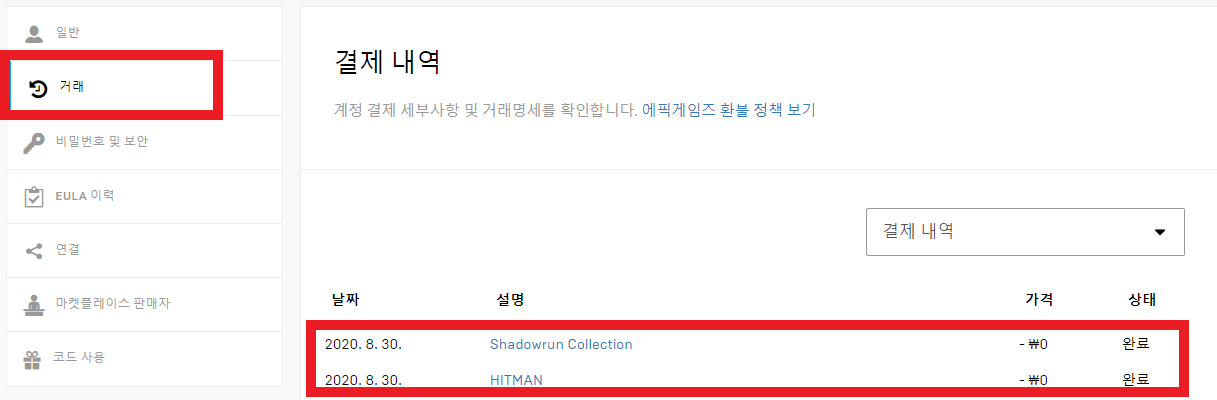 구매 기록에 게임이 등록되어 있으면 성공적으로 구매된 것입니다.