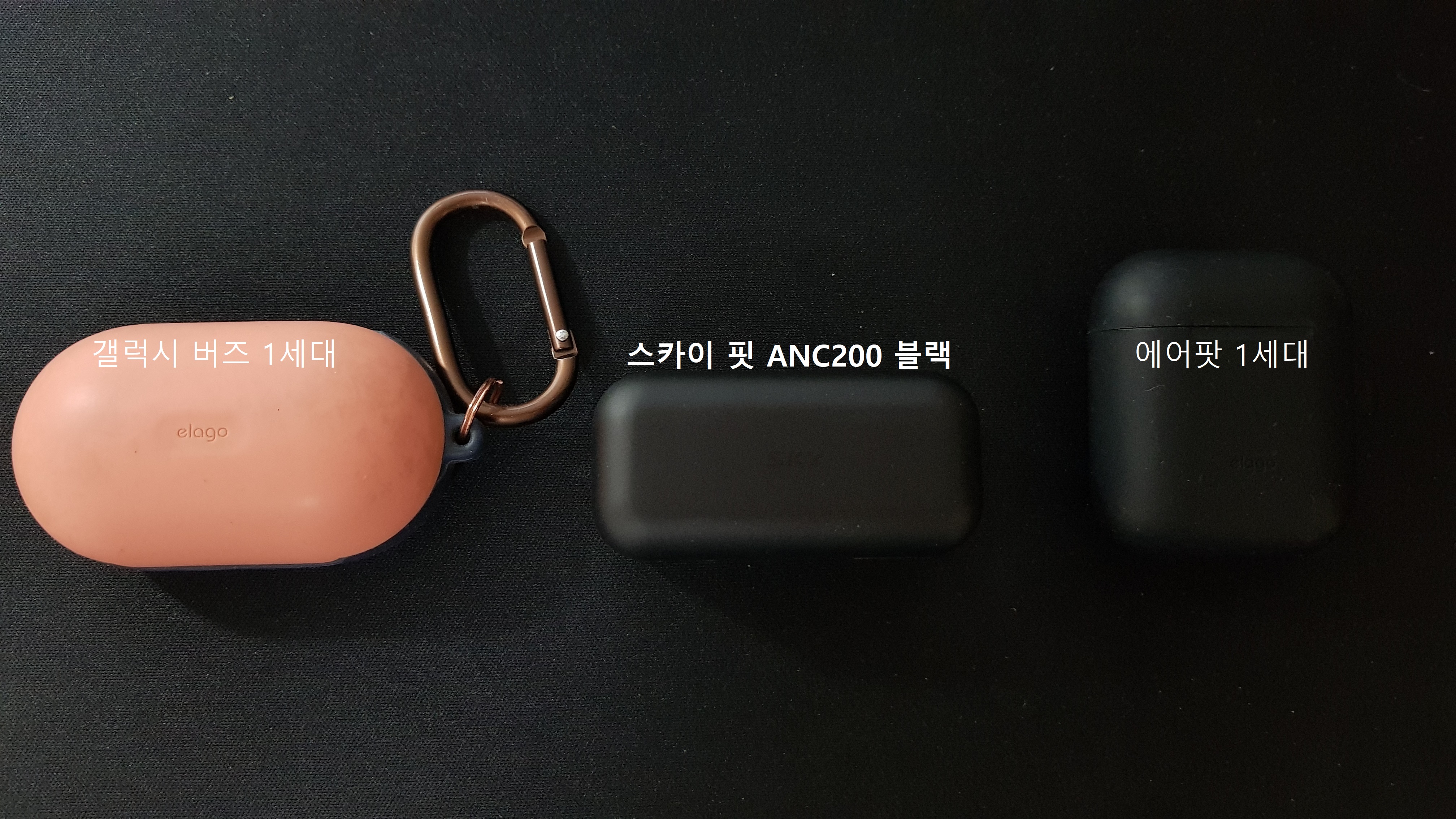 아래는 이어폰들의 두께를 비교한 사진입니다.
