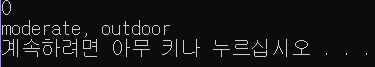 - 0도 이상이면서 40도 미만이면 실외 활동 가능하므로 moderate, outdoor 출력